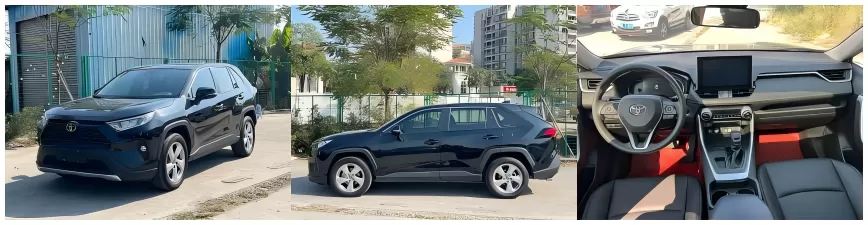 Toyota RAV4 Rongfang nổi tiếng về độ bền và giá trị bán lại cao. Chiếc xe này được đăng ký vào tháng 6 năm 2021, đã đi được 43.000 km, quãng đường đi được hàng năm hợp lý và được mua tại địa phương ở Trung Sơn. Bên ngoài màu đen mang phong cách cổ điển và chống bụi bẩn, đồng thời các bề mặt kim loại vẫn ở tình trạng ban đầu khi xuất xưởng. Lớp sơn chỉ có vết xước nhỏ, hao mòn thông thường do sử dụng hàng ngày và không ảnh hưởng đến kết cấu xe.