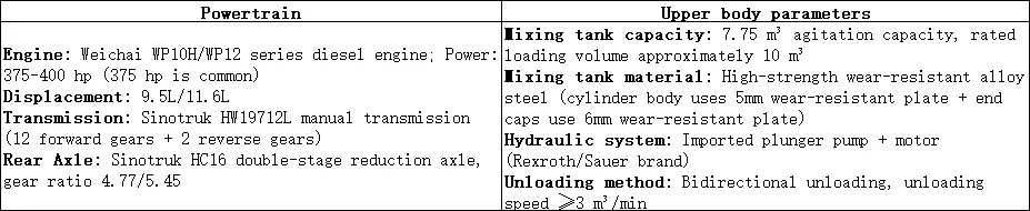 Định vị phương tiện: Xe trộn chuyên dụng vận chuyển bê tông thương mại, phù hợp với hạ tầng đô thị và vận chuyển bê tông công trường